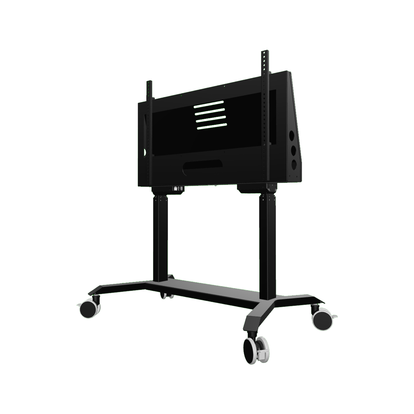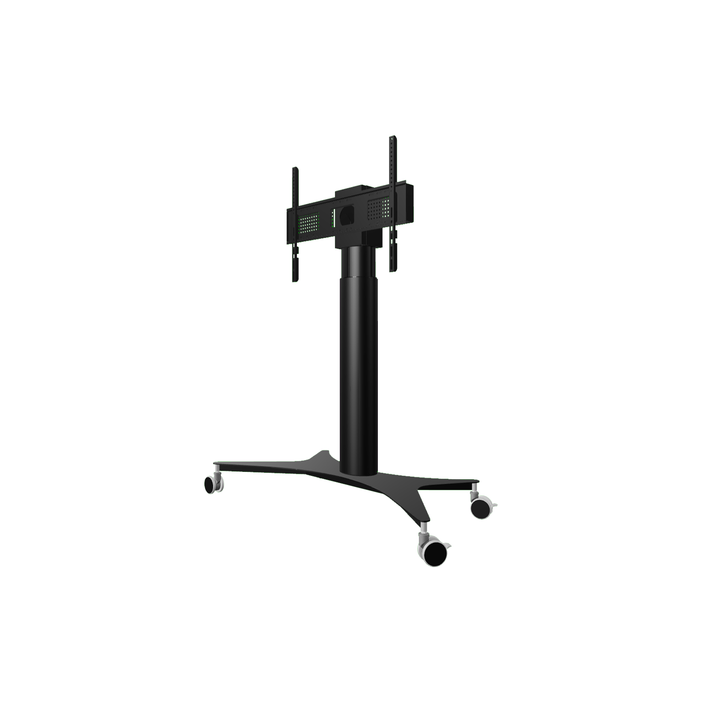 Die massive Einzelsäule sorgt für technische Stabilität, während die vier feststellbaren 100-mm-Lenkrollen auch auf längeren Wegen einen sicheren Stand garantieren. Optional erhältliches Zubehör wie Antikollisionsschutz und praktische Halterungen erlauben eine individuelle Anpassung. Das System eignet sich für Displays von bis 98 Zoll – ideal für Besprechungsräume, Klassenzimmer oder Events.