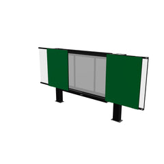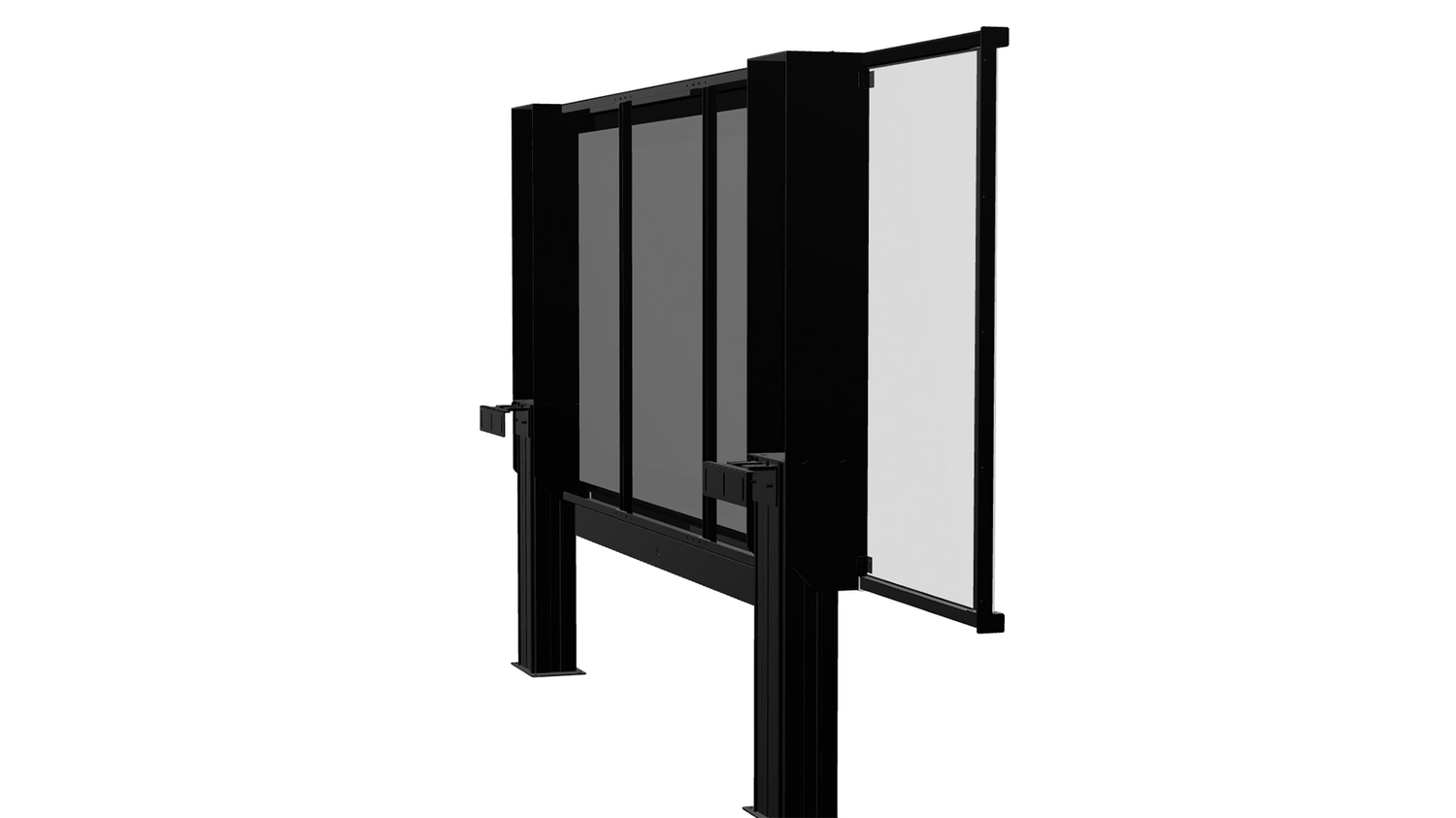 - Zwei verschiebbare Tafelelemente, die optional in eine hochwertige Aluminiumschiene integriert werden und sich über die gesamte Breite verschieben lassen.