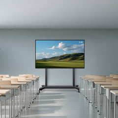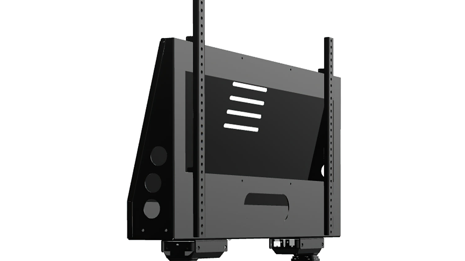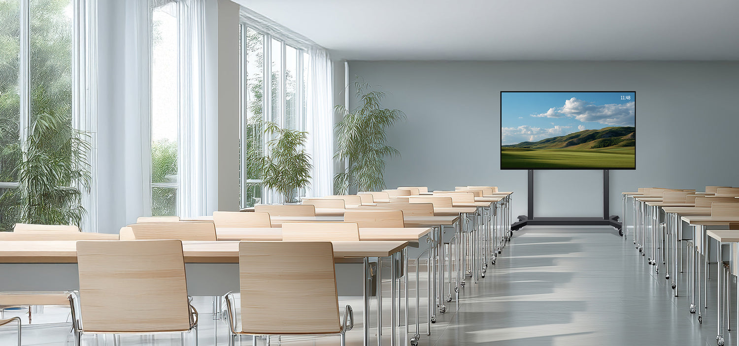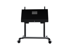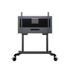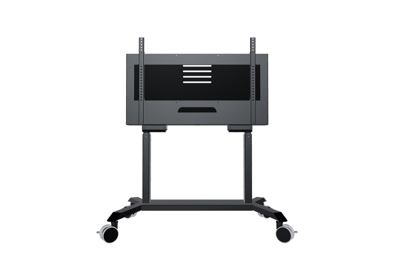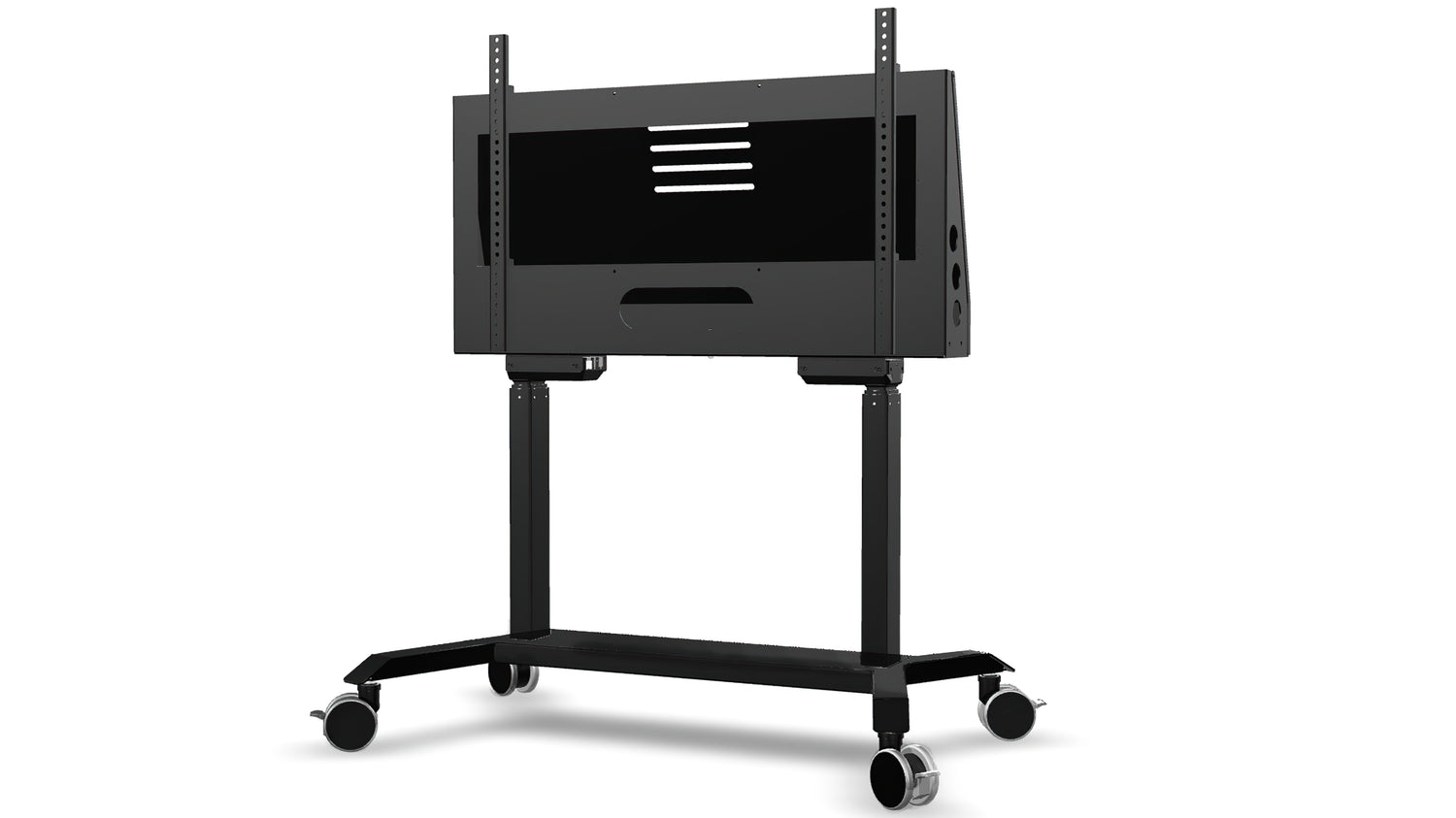 Vier große 100-mm-Laufrollen mit integrierten Feststellbremsen sorgen für maximale Beweglichkeit und sicheren Stand. Der ergonomisch geformte, V-förmige Fuß wurde gezielt so entwickelt, dass auch Rollstuhlfahrerinnen und Rollstuhlfahrer einen bequemen und sicheren Zugang zum Display haben – ein deutliches Plus in puncto Barrierefreiheit und Inklusion. Trotz seiner hohen Mobilität überzeugt das System durch außergewöhnliche Stabilität und eine platzsparende, klare Linienführung, die Funktion und Design perfekt vereint. Durchdachte seitliche Öffnungen ermöglichen eine saubere Kabelführung, während das verdeckte Kabelmanagement für eine aufgeräumte, professionelle Optik sorgt.