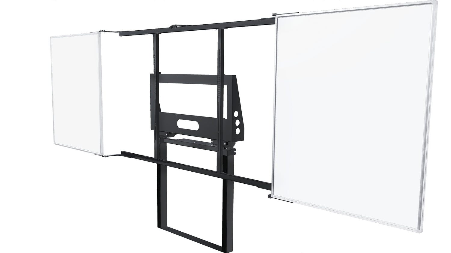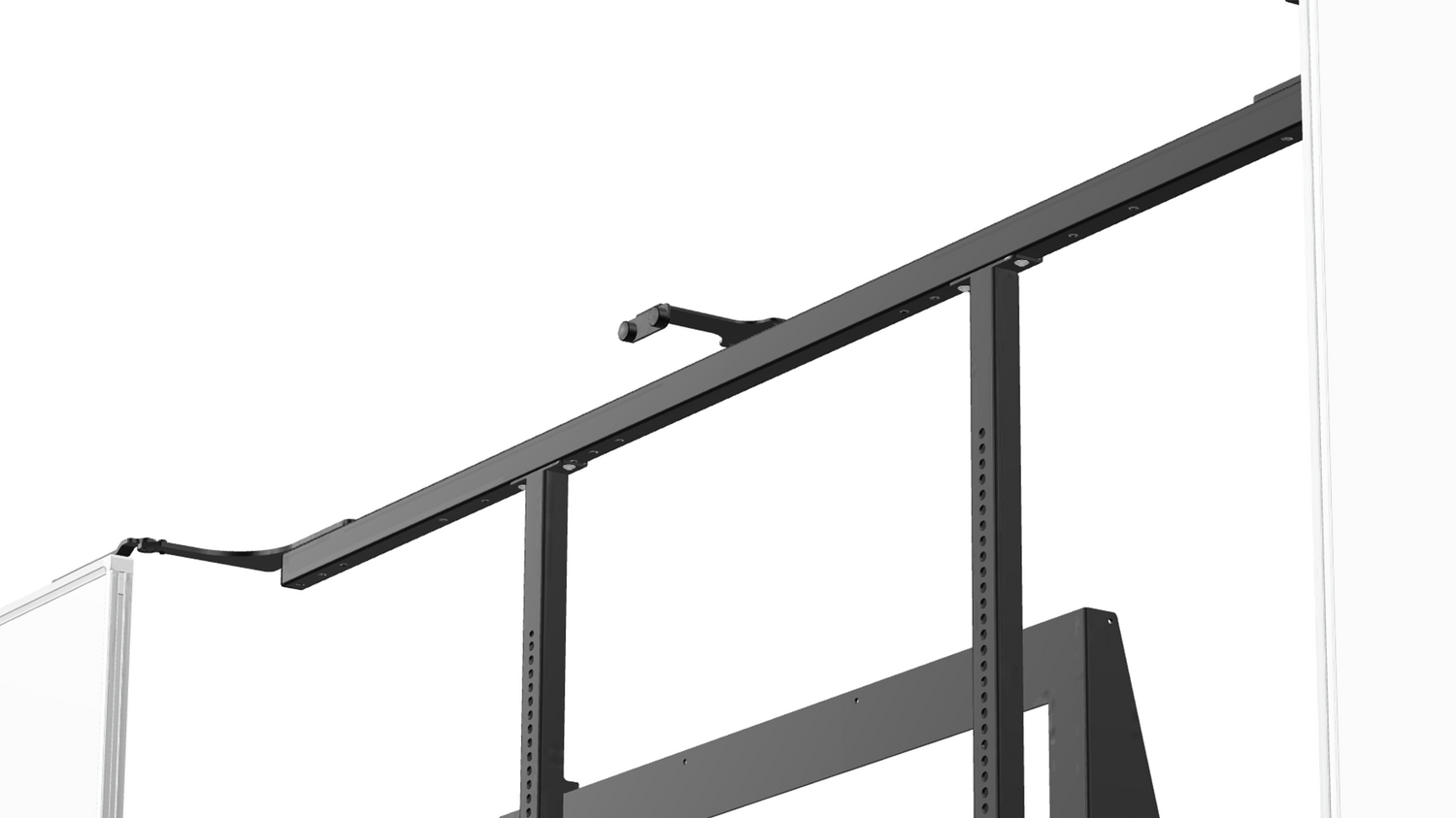 Eine integrierte Sicherheitsabschaltung schützt das System zuverlässig vor Schäden durch unbeabsichtigte Kollisionen: Erkennt der Mechanismus Widerstand, stoppt die Höhenverstellung sofort und verhindert so Beschädigungen am Display oder Verletzungen der Nutzer. Zusätzlich verhindert ein zentraler Pufferanschlag, dass das Display beim Zuklappen der Tafelflügel beschädigt wird. Diese Schutzfunktion trägt wesentlich zur Langlebigkeit des Systems bei und sorgt für einen sicheren, reibungslosen Einsatz im täglichen Gebrauch.