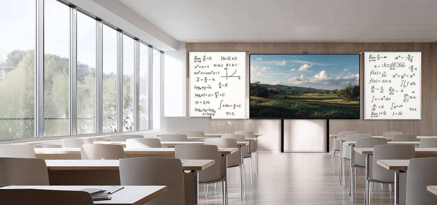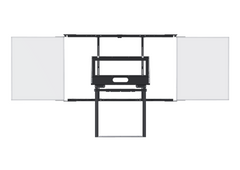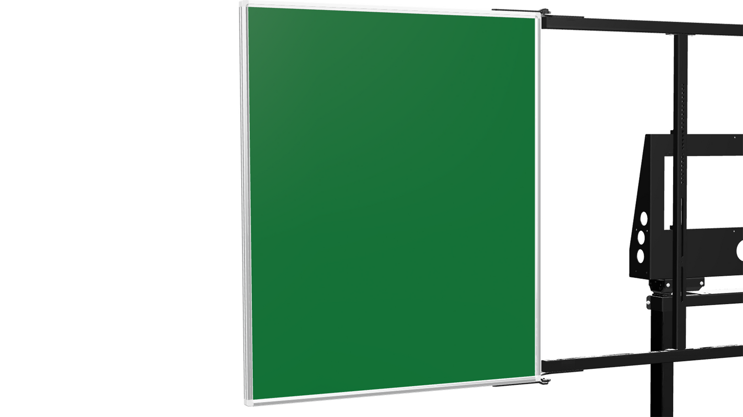 Für noch mehr Flexibilität im Einsatz lässt sich der Displayständer mit einer Vielzahl an Zubehör erweitern. Praktische Laptopablagen erleichtern die Bedienung, während Kamera-, Soundbar- und Lautsprecherhalterungen das System für Videokonferenzen oder hybride Unterrichtsformen optimal ergänzen. Optional verfügbare seitliche Tafelflügel – wahlweise als emaillierte Whiteboardflächen oder klassische Kreideflächen – schaffen zusätzliche Interaktionsmöglichkeiten und machen den Ständer auch für den pädagogischen Einsatz besonders attraktiv. Die Steuerung erfolgt komfortabel und nutzerfreundlich: Neben dem integrierten Taster am Display kann das System auch bequem per App oder Fernbedienung bedient werden, was die Bedienung noch flexibler und intuitiver macht.