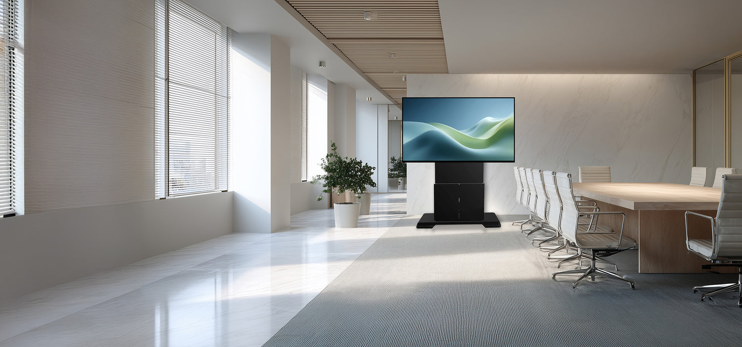 - Dual-Version: Zwei Displays bis 75 Zoll – perfekt für Splitscreen-Anwendungen, hybride Meetings oder Infopunkte mit paralleler Anzeige.