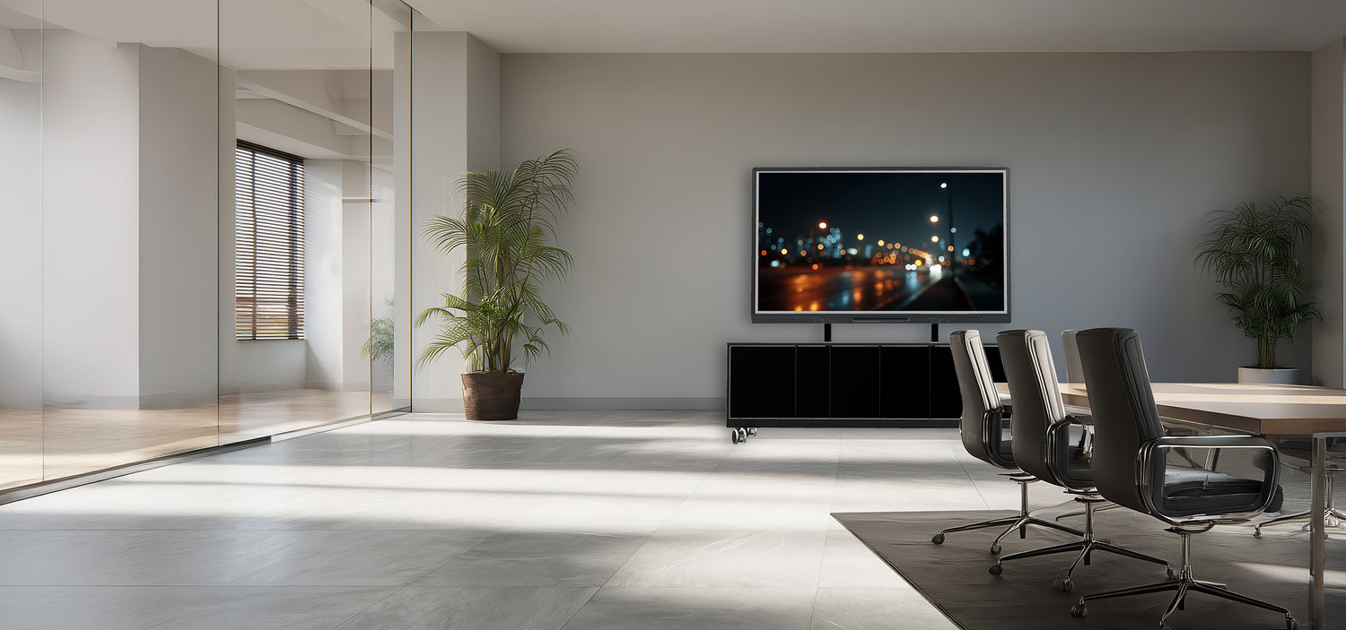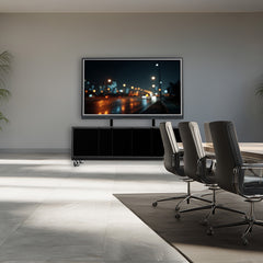 Das elektrisch höhenverstellbare Schranksystem von SMF Solutions vereint Design, Komfort und Leistung in einer Lösung. Mit einer Tragkraft von bis zu 160 kg und einem Hub von 650 mm bietet es die perfekte Basis für beeindruckende Präsentationen auf großen Displays von 65 bis 98 Zoll. Die stabile Rahmenkonstruktion garantiert sicheren Halt – selbst bei besonders schweren oder doppelt montierten Displays. Auf Knopfdruck passt sich das System ergonomisch an jede Situation an und sorgt so für maximale Wirkung und höchsten Bedienkomfort.