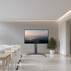 Ausgestattet mit der leistungsstarken HS700 High-Speed-Säule verfügt der fahrbare Displayständer über eine elektrische Höhenverstellung von 700 mm, die maximale Flexibilität bei der Anpassung an unterschiedliche Nutzergruppen und Raumsituationen bietet. Mit einer Geschwindigkeit von 30 mm/s erfolgt die Bewegung schnell, leise und präzise – ideal, wenn das Display im Alltag häufig neu ausgerichtet werden muss. Dank einer Tragkraft von bis zu 150 kg eignet sich der mobile Ständer problemlos auch für besonders große Displays oder interaktive Touchlösungen und überzeugt so gleichermaßen in Klassenzimmern, Konferenzräumen oder bei professionellen Präsentationen.
