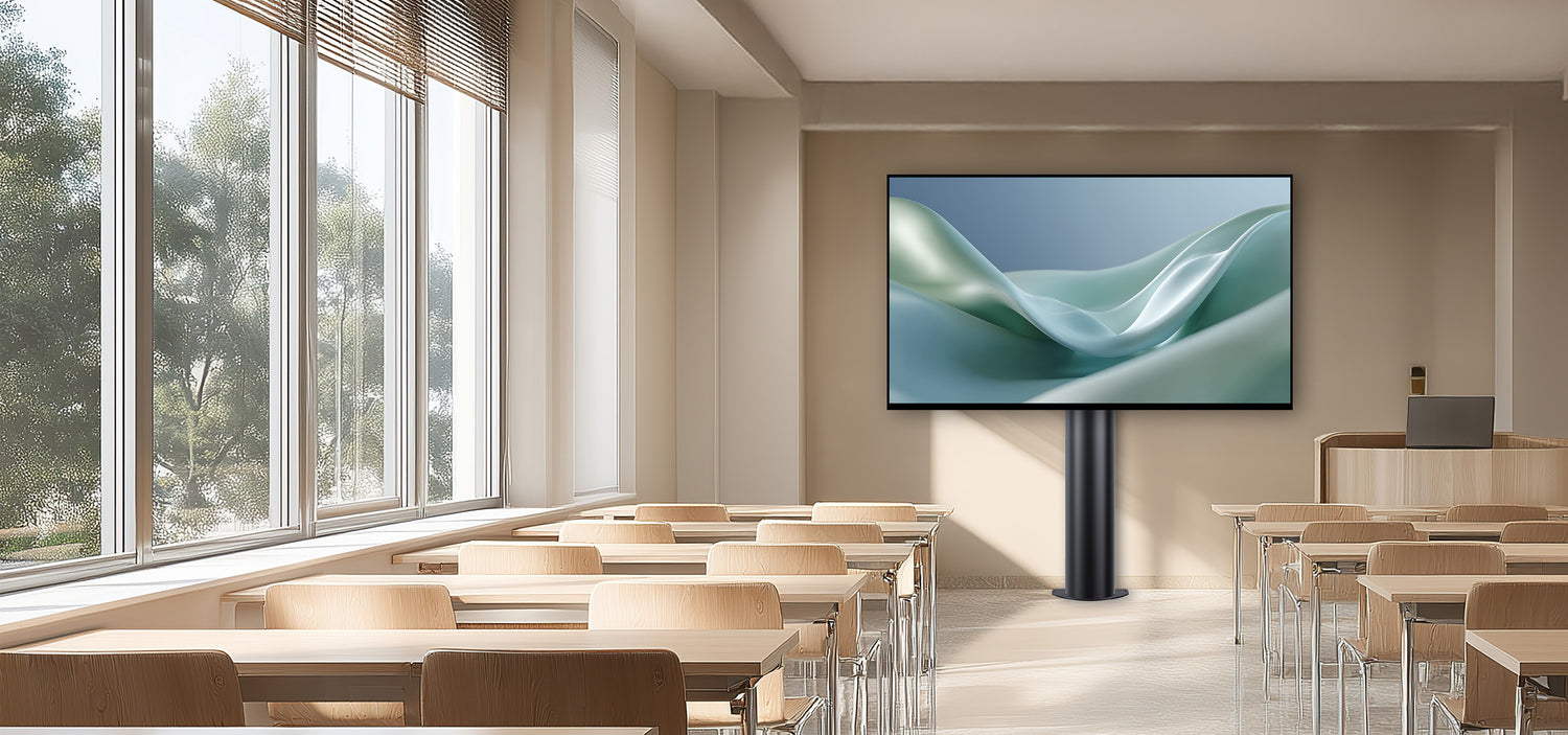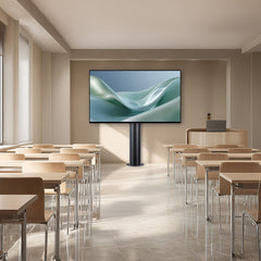 Der SMF Solutions Single-Motor Displayständer überzeugt durch ein schlankes, funktionales Design, das sich harmonisch in moderne Arbeits- und Lernumgebungen einfügt. Ob im Konferenzraum, Klassenzimmer oder offenen Office-Bereich – die klare Formensprache verbindet Funktionalität mit Ästhetik und schafft eine stilvolle Atmosphäre. Herzstück ist die markante Einzelsäule, die nicht nur ein optisches Alleinstellungsmerkmal darstellt, sondern auch für eine platzsparende Raumnutzung sorgt. Zusammen mit einem passenden Display entsteht so eine interaktive Kommunikationsfläche, die digitale Zusammenarbeit optimal unterstützt.